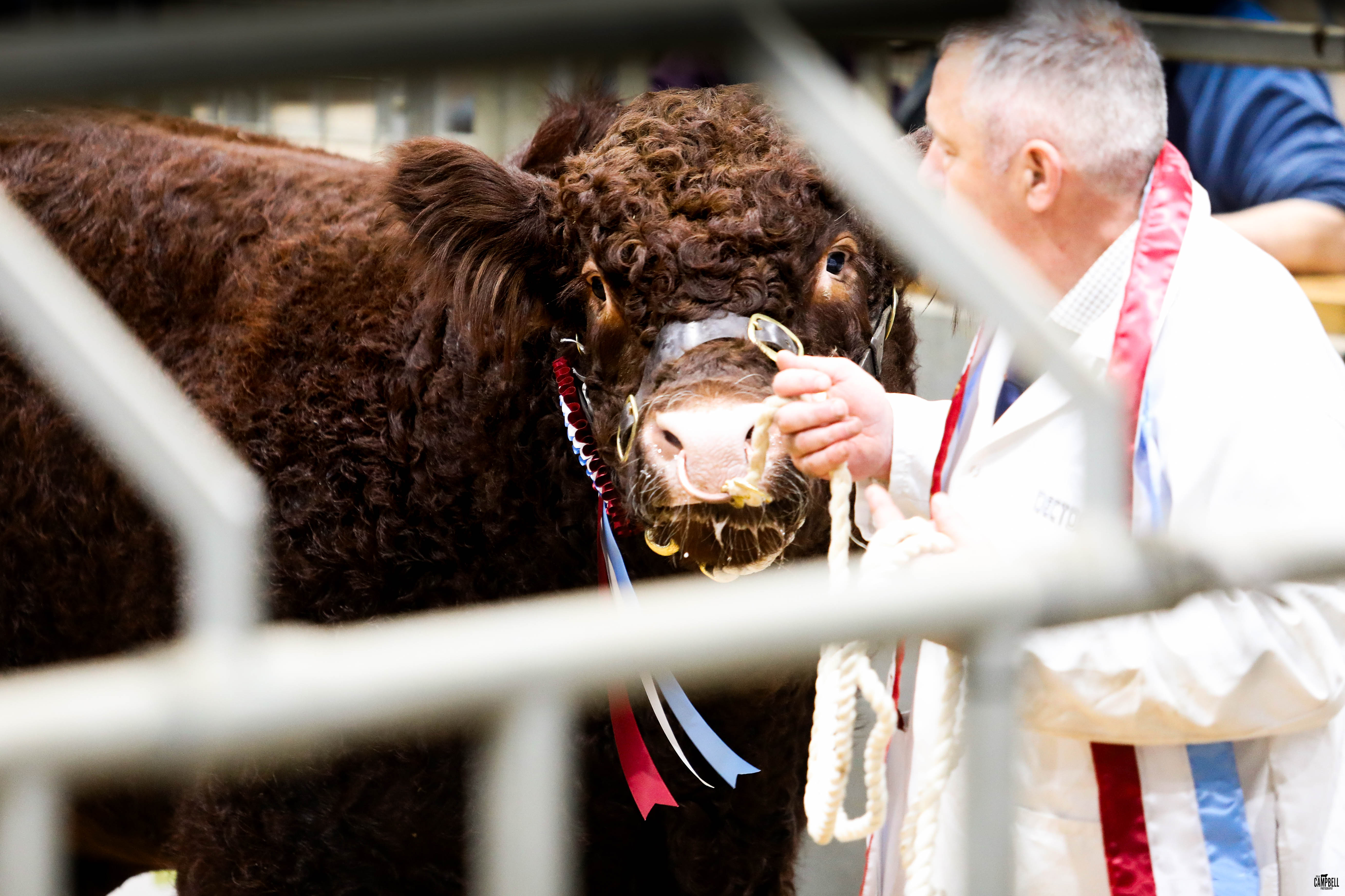 Stealing the spotlight and taking home the Overall Championship was Gentons Tommy from B. Facon’s Gentons Pedigree Livestock. This stylish young bull, born in February 2023, impressed the judge with his length, breed character, and balance. He is a son of Murphy, the renowned French National Show Champion in 2019, and out of Gentons Oracle, a Whitebog Kracker daughter. Tommy later went on to lead the trade at 5,800gns, selling to H. E. Powell, Brecon.